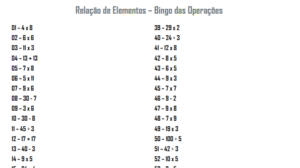 – Sem repetição de cartelas, cada cartela contém as Respostas para as Operações cantadas pelo professor